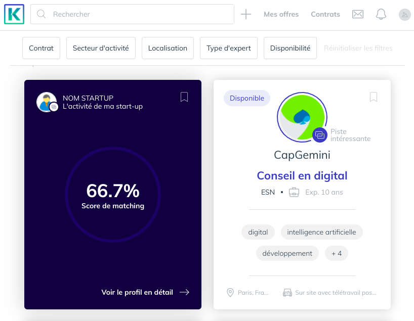 - Vous êtes sur la liste de profils matchés avec votre besoin.